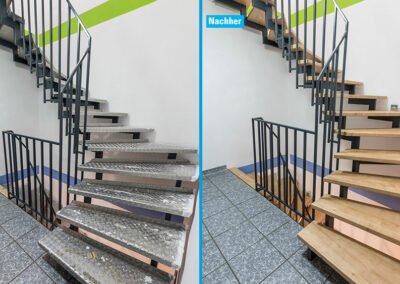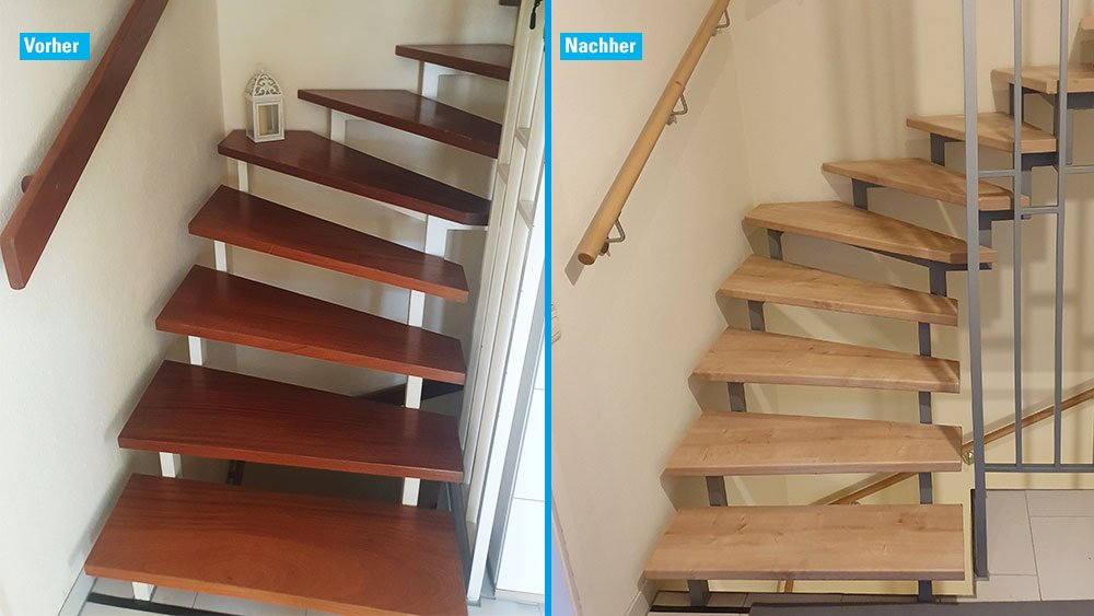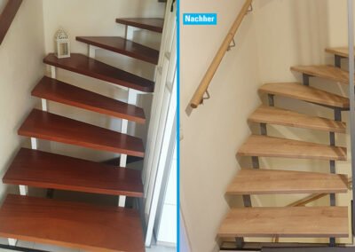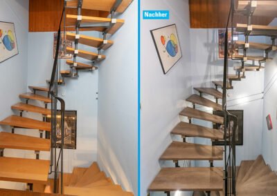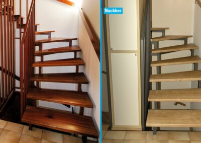 Die Treppe ist in die Jahre gekommen? Dann sind wir gerne Ihr Ansprechpartner! Wir montieren eine neue Treppe durchschnittlich innerhalb eines Tages. Verfügt die alte Treppe über eine intakte Metallkonstruktion, genügt ein Stufentausch. Ob neue Beläge oder kompletter Treppentausch – wir beraten Sie gerne vor Ort, erstellen das Aufmaß und erledigen den Austausch nach zentraler Fertigung. Sauber, schnell und unkompliziert. Ergebnis: ein Treppenunikat, das zum Ambiente passt und ein Plus an Sicherheit bietet!