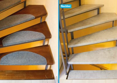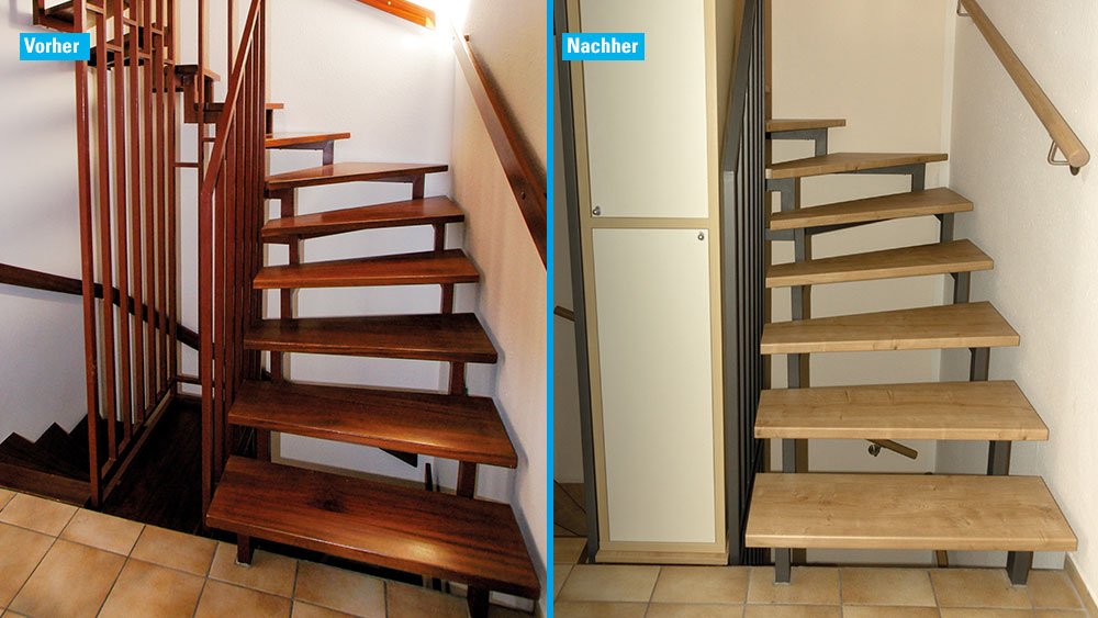 Die vorhandene Treppe passt nicht mehr zu Ihren Vorstellungen vom stilvollen Wohnen? Die Stufen oder Beläge Ihrer Treppe sind abgenutzt? Wenden Sie sich an uns. Wir sind Spezialisten für den schnellen, sauberen Treppentausch. Und natürlich auch fürs Renovieren Ihrer vorhandenen Treppe mit neuen, wunderschönen Stufen in Wunschmaterial und Wunschfarbton. Lassen Sie sich inspirieren von einer großen Vielfalt möglicher Materialien und Farben.